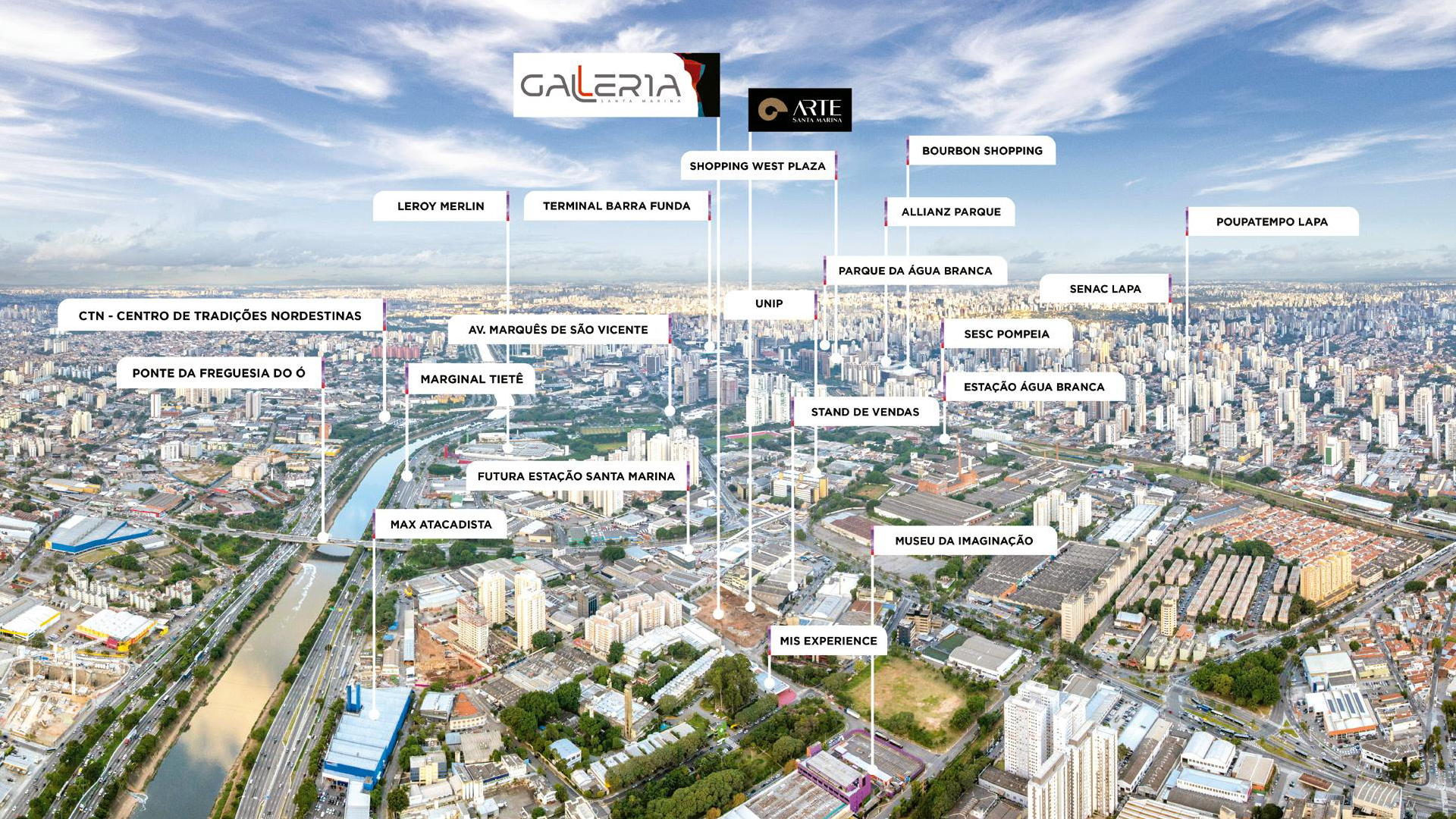 O GALERIA SANTA MARINA está cercado por uma infraestrutura completa de serviços, lazer e cultura. Tenha a poucos minutos de casa: