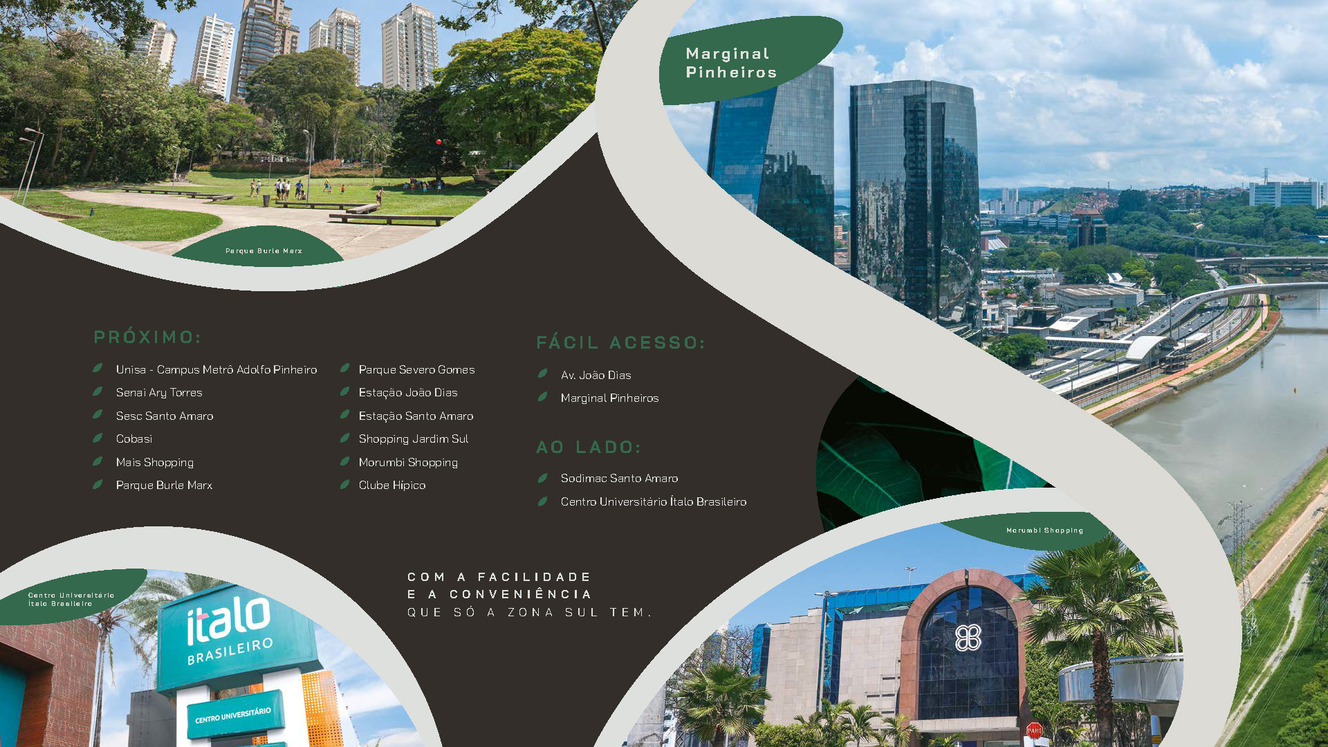 - Facilidades: Coworking, Easy Market, Lavanderia, Pet Care e Delivery.