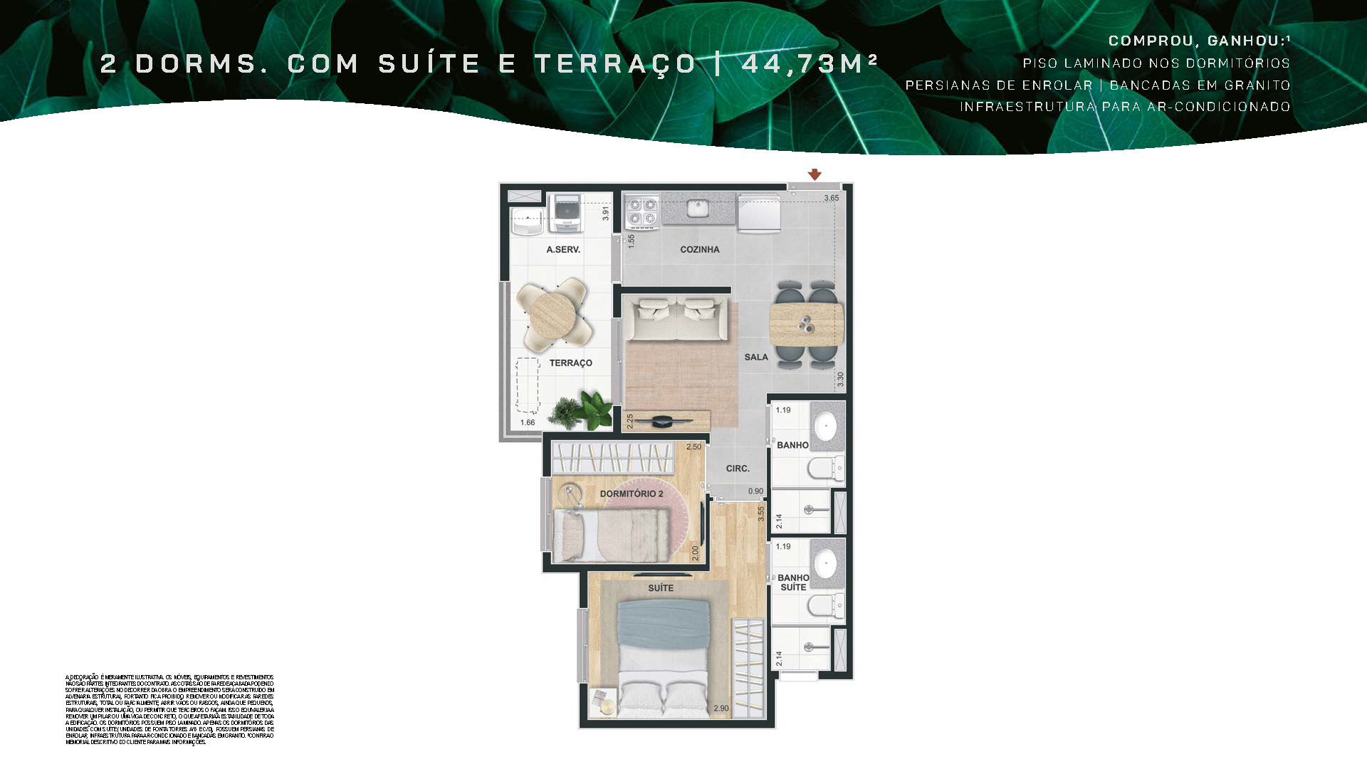 - Plantas de 32m² a 45m² (opções com varanda e suíte).