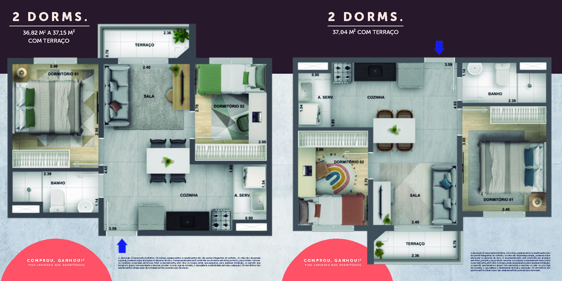Conforto e Opções de Planta (1 e 2 Dormitórios)